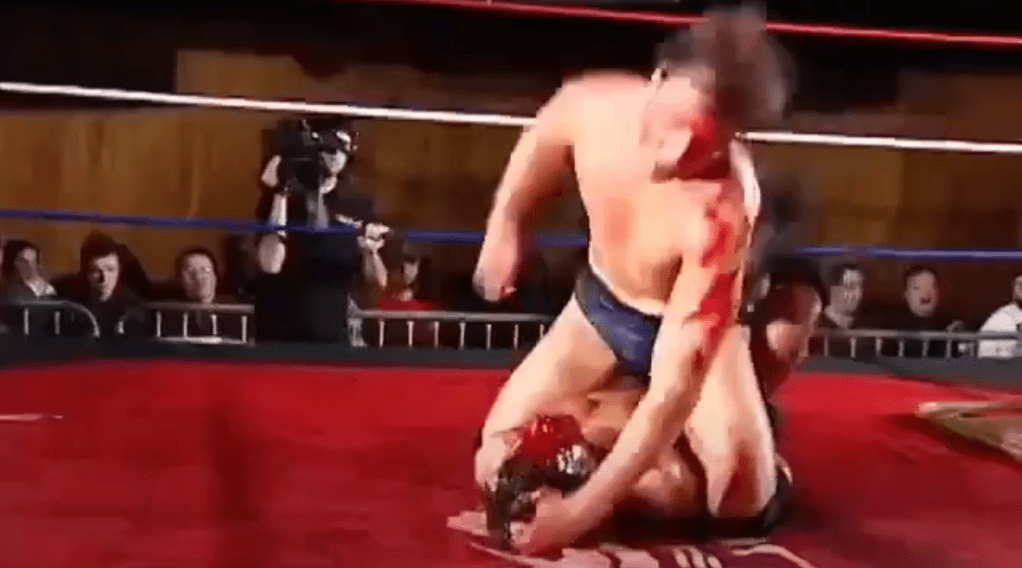 Jacobs gets a bit too fancy. He gets away with a strike exchange. Gets away with a telegraphed ace crusher. He even goes back to the spike, and that doesn’t cost him either. But never once, in his longest segment of control, does he go for the win. In what feels like a instant, all the blood loss catches up to him, and the younger, faster, more physical man draws even. He knots Jacobs’ hands behind his back Houdini style, then thunders down on him with his fists, and eventually the spike in what is one of the most visceral and guttural spots you’ve ever seen.